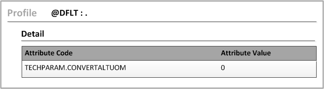 In this example, the TECHPARAM.CONVERTALTUOM profile attribute is 0.