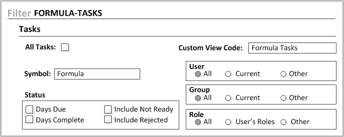 Create the filter for pending tasks in the Filter form. Select the custom view from the Custom View Code list.