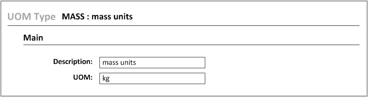 - Select a default value for the conversion type. This is the basis for conversion to other UOMs of the same type. For example, any Mass type UOM can be converted to kilograms.