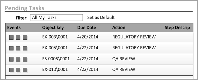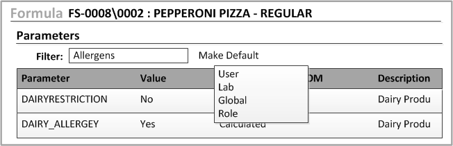 Default filters are defined by users for tables of data Click Set as Default in the Pending Tasks grid or Parameters grids and click Refresh. The default filter applies to the current user only. If you are the master user, then you are prompted to save the default. If you are not the master user, then the default is saved to your user account.