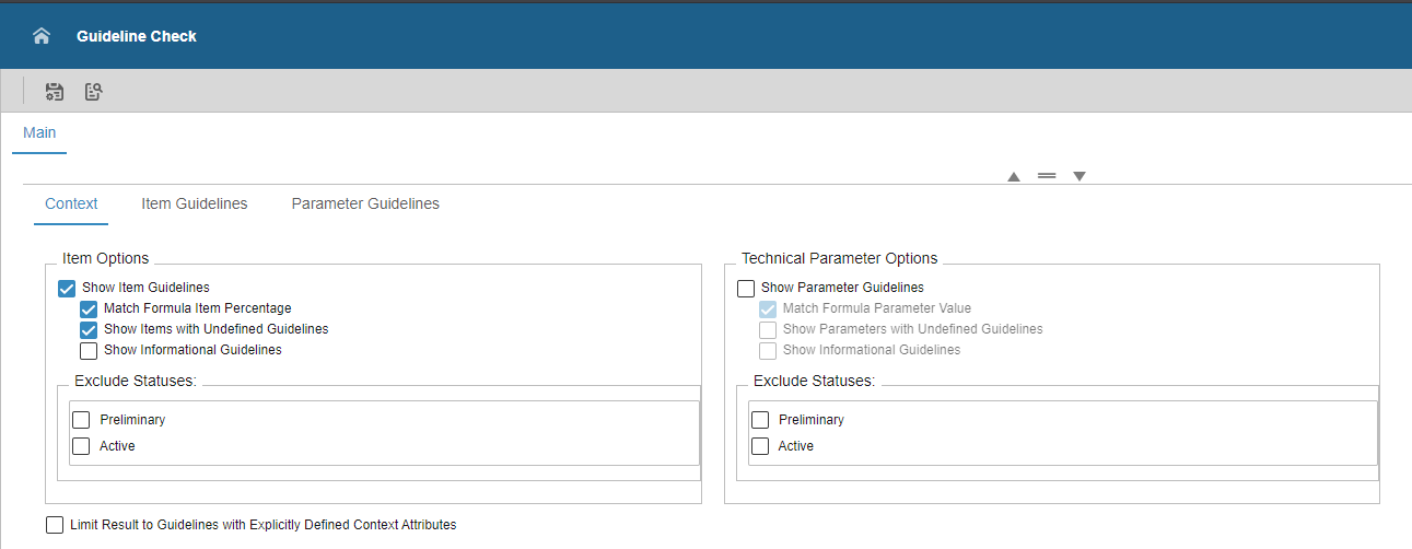 The form for setting up the guideline check has a setting for including items or parameters without guidelines.