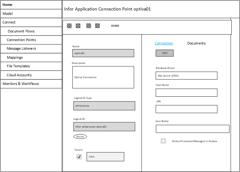 In the ION , you must configure the application connection points. This Logical ID must match the Logical ID that you specified in Infor OS and the Optiva profile attribute ION.FromLogicalID.