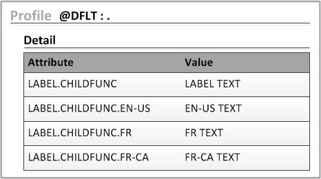 If step 1 is not found, use the function code that is assigned to the profile attribute LABEL.CHILDFUNC.Language-Region. (For example,