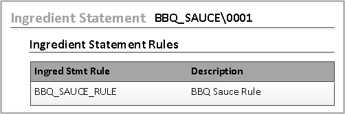 In the Ingredient Statement Rules tab of the Ingredient Statement form, you must specify at least one rule on the ingredient statement.