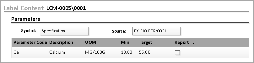 In this case, although the Specification’s Target column value of 55 is valid, the Min column value of 10 is too low.