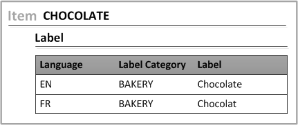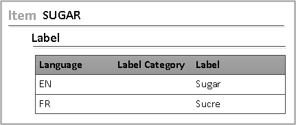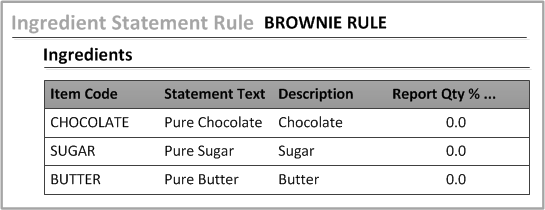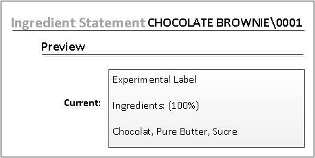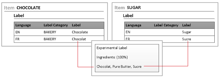You can create an ingredient statement that shows text in different languages. For example, you can use French text for chocolate and sugar and English text for butter.