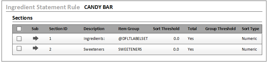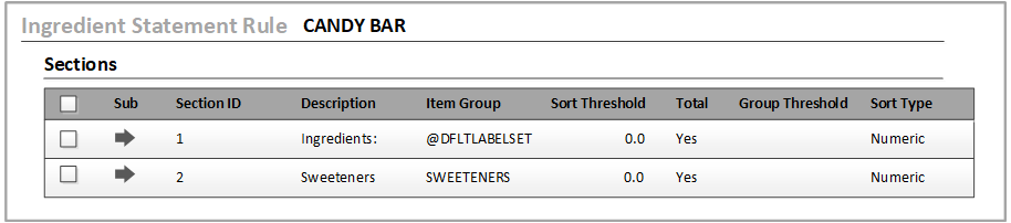 The order in which sections and subsections are added to the Ingredient Statement Rule is important. It is the same order in which they are displayed in the ingredient statement.