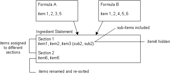 For example, you can assign ingredients to sections and subsections, include or exclude ingredients, and control the sort order of the ingredients.