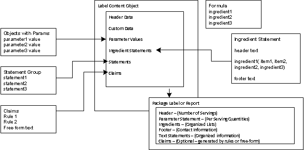 The Label Content object is used to organize the information that is related to the product label. The label includes this information: