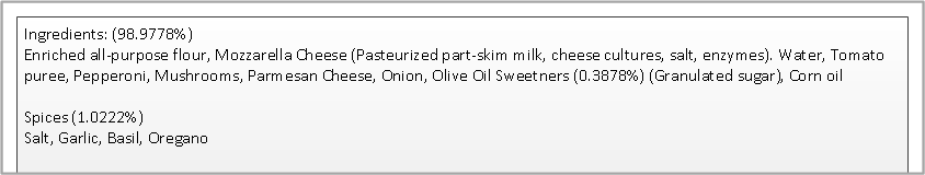 - A complex ingredient statement can be composed of several sections and subsections.