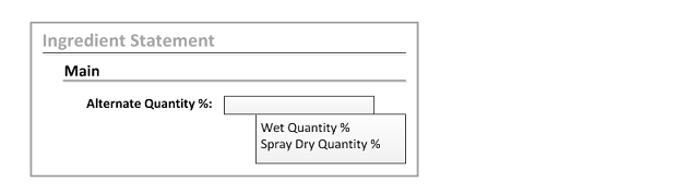 The Alternate Quantity% list, in the Ingredient Statement form, can be used to select another column for sorting.
