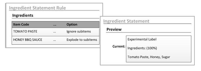 In the Ingredients tab of the Ingredient Statement Rule form, the Option field helps to determine how much information is displayed in the ingredient statement. You can: