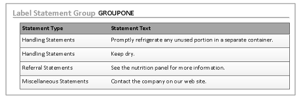 Use the Label Statement Group form to define the categories and text for each statement.