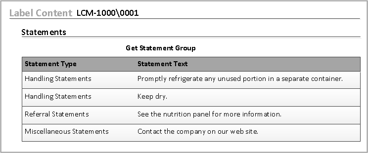 You can add groups of statements to a Label Content object in one step. Click in the Statements tab of the Label Content object.
