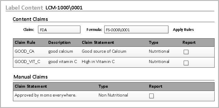 In the Label Content object, you can generate claim text for a label content object by applying claim rules or by typing free-form text.