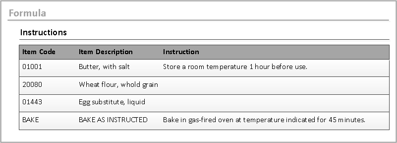 As shown in the Instructions tab of the Formula form, the default text has been changed for line 1 and 4. These changes only apply to the current formula.