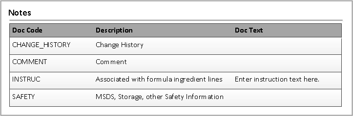 Adding instructions to the item Open the Item form. Click the Notes tab. Specify the text for the INSTRUC doc. code.
