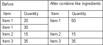 Combining like ingredients