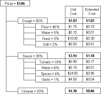 Item parameter values contribute to formula parameter values. The unit contribution cost and the extended contribution cost for each item in the formula are shown here.