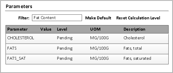 In the Formula form, the Level column indicates whether a parameter value has been calculated automatically by Optiva or manually overridden by a user. You can use the Reset feature to recalculate these values again automatically.