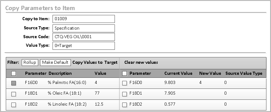 In the Copy Parameters to Item dialog, these rules apply when the Source Type is Specification.