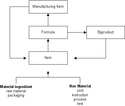Items are the ingredients, instructions, byproducts, packaging or process components in a formula. A formula yields: