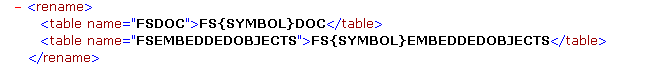 For example, if you are exporting attachment data for a specification for a report, then rename the DOC table to FSSPECIFICATIONDOC. Rename the tables to match the objects for the report.