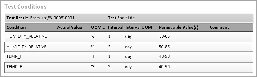 - Click the Test Conditions tab. The test conditions are organized by interval.