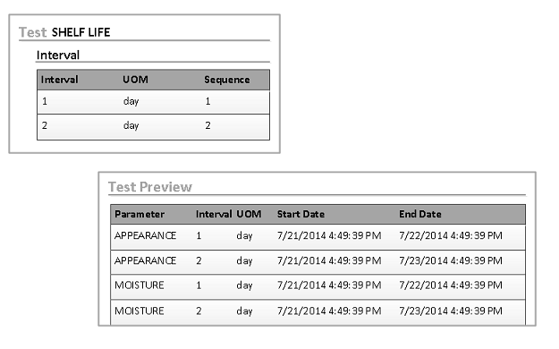 In this example, the intervals for each parameter are displayed in the Test Preview. Each result is repeated over the 2 day intervals.