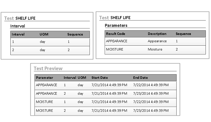 The preview shows the parameters that are to be evaluated and the intervals for each parameter test. The intervals and parameters come from the test.