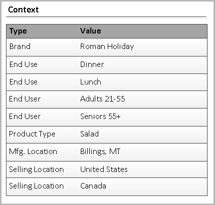 Context data describes how products are used after they are manufactured. Context data is optional and can be added to Optiva business objects. The data can be used in searches and reports.