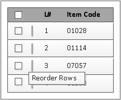 Moving or rearranging a row Position the cursor in the row slider column and drag the row up or down to move it.