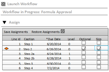 In the tab, the Optional check box is used to specify which steps are eligible to be skipped. In this example, Step 2 is eligible to be skipped.