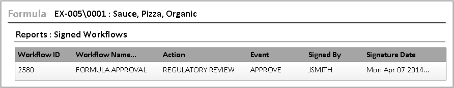You can also view electronic signatures from an Optiva object. Open the object that was assigned the signature during the workflow process. The Reports tab shows all signatures for that object.
