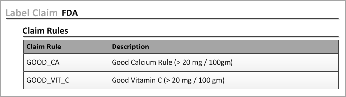 You can use the Lookup to assign claim rules to the Label Claim object. In this example, there are 2 GOOD Source rules that are assigned to the FDA claim. One rule is for Calcium and the other rule is for Vitamin C.