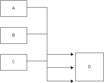 In this scenario, Script Library D can use the properties from Script Libraries, A, B, and C.