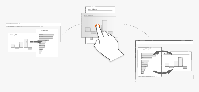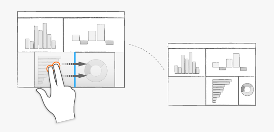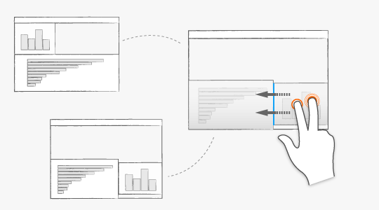 Si utiliza dos dedos para arrastrar un widget, este puede empujar a otros widgets a su paso. Si se empuja contra un borde del panel o contra widgets que no se pueden comprimir más, el widget se comprime contra el borde.