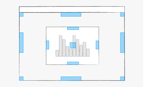 En este ejemplo se muestra el uso del área de zona activa en el borde de un panel. Las zonas activas de los bordes de un panel ocupan una posición intermedia a lo largo del borde. Al soltarlo, el widget se expande verticalmente a lo largo de la altura del borde. También se expande horizontalmente para ocupar la mitad del espacio disponible.