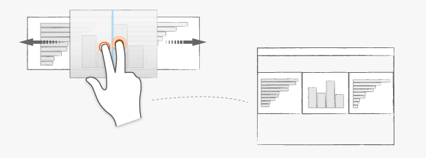 If you use two fingers to drag a widget, the widget can push other widgets in its path. If pushed against an edge of the dashboard or against widgets that cannot be further compressed, the widget is compressed against the edge.
