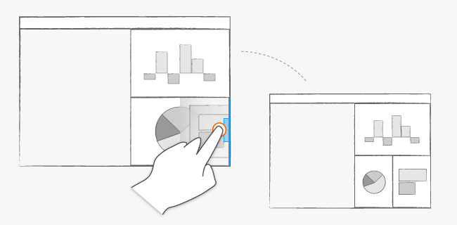 If you use two fingers to drag a widget, the widget can push other widgets in its path. If pushed against an edge of the dashboard or against widgets that cannot be further compressed, the widget is compressed against the edge.