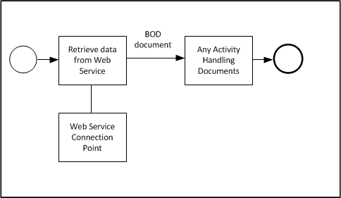 To retrieve data from a web service, the model in ION Desk is as follows. A document flow contains a web service activity, usually at the start of the flow. In the activity, the web service connection point to be used is selected. This diagram is an example document flow: