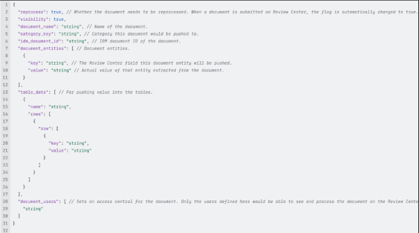 For example, you can create an RPADocumentProcessing type dedicated to the Review Center, with a unique attribute such as ID. This attribute is included in the request payload and used by RPA to load the document preview.