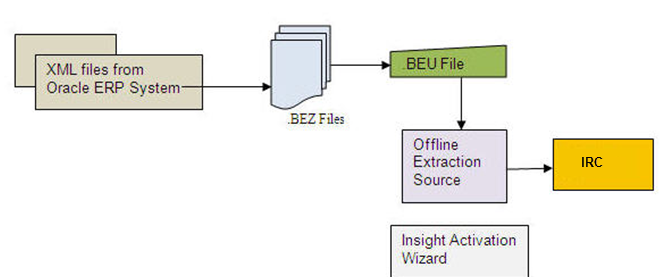 IRC supports an additional method to extract offline data - from BizRights Interchange Format (BIF). BIF represents a set of BEZ files which are the encrypted versions of XML files containing data extracted from the Oracle ERP systems or ERP systems matching the Oracle security model.