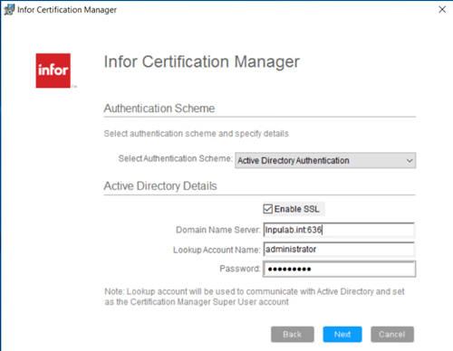 Note: To use Certification Manager with ADFS authentication, you must select Certification Manager authentication in the Select Authentication Scheme field.