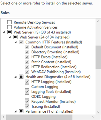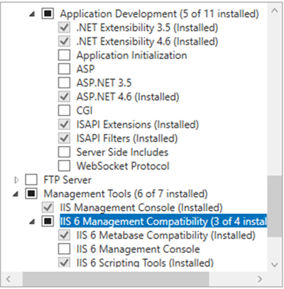 Minimum Role Services to be Installed for IIS 10x