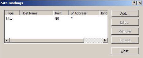 - Select a website in the tree view and click Bindings. The bindings editor is displayed.