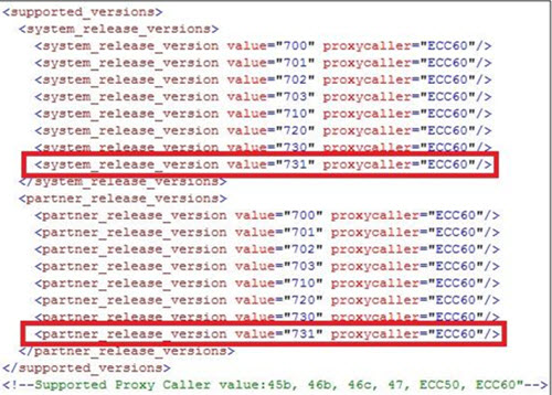For the corresponding proxycaller value, go to the System Status screen on your SAP user interface. The value in the Component Version field is the proxycaller value for that SAP version. However, this value has to be modified in this node as shown here: