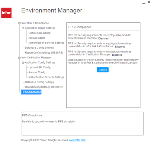 Use the FIPS Compliance feature of the Environment Manager utility.