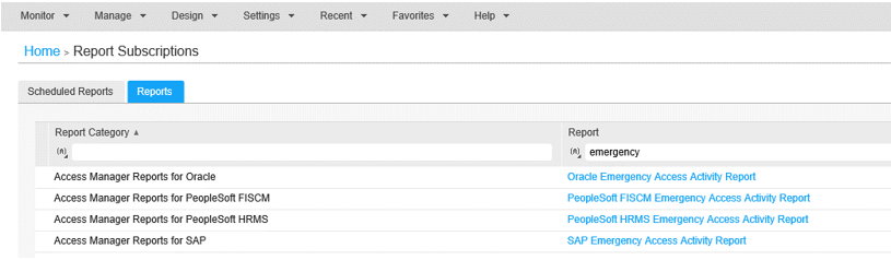 The ERP specific Emergency Access Activity reports may be found in the ERP specific Access Manager Reports.