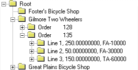 In a Tree component, IDO collections populate levels in a graphic "tree". Collections from different IDOs can be used at different levels, linked in parent-child relationships, or a single IDO can be used recursively to populate the levels. Dynamic and fixed filtering can be applied at each level.